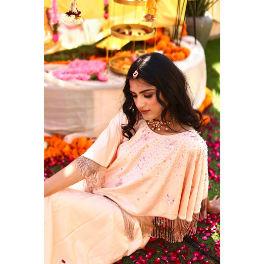 Lotus petal peach cape blouse