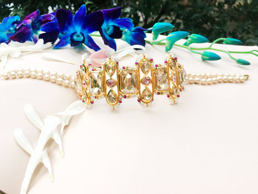 ROSE QUARTZ JADE PHULKARIYAAN CHOKER
