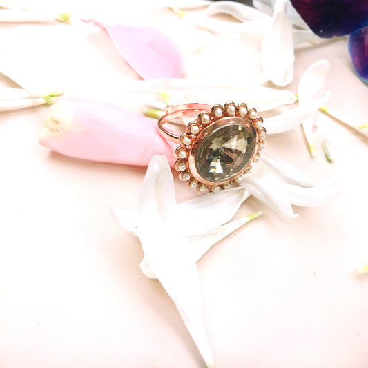 GOLDPLATED TOPAZ PEARL AURA PHULKARIYAAN RING