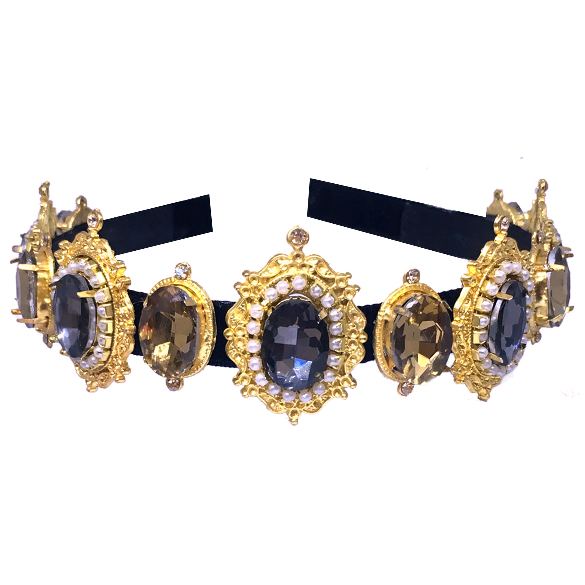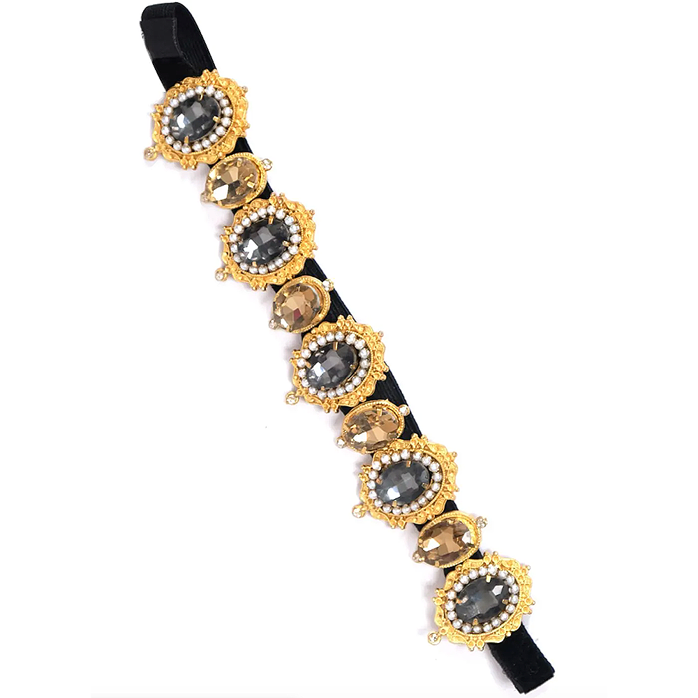 Pair this cocktail piece made with black and topaz over sized oval stones with 22K Gold-plated hairbnad from our bridal collection.