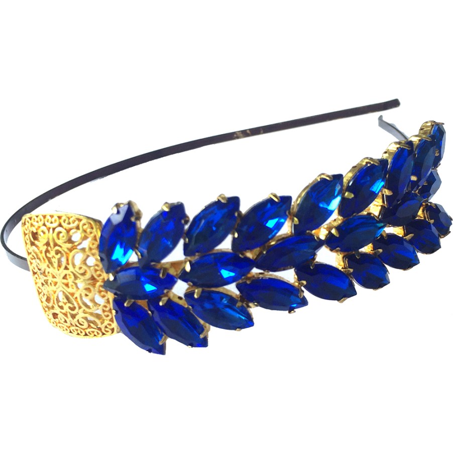 Bring on the festive spirit with this royal headgear made with blue Atones and a filigree block. Wear it wit an Indian or Western outfir to complete your look.