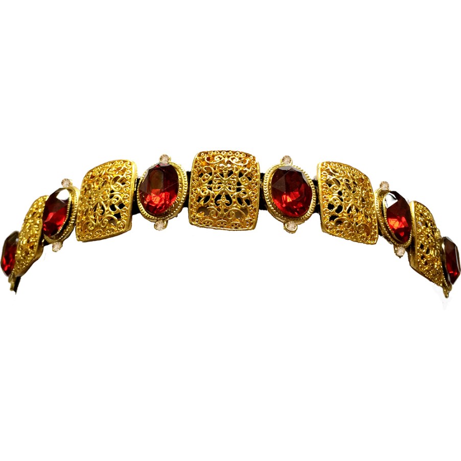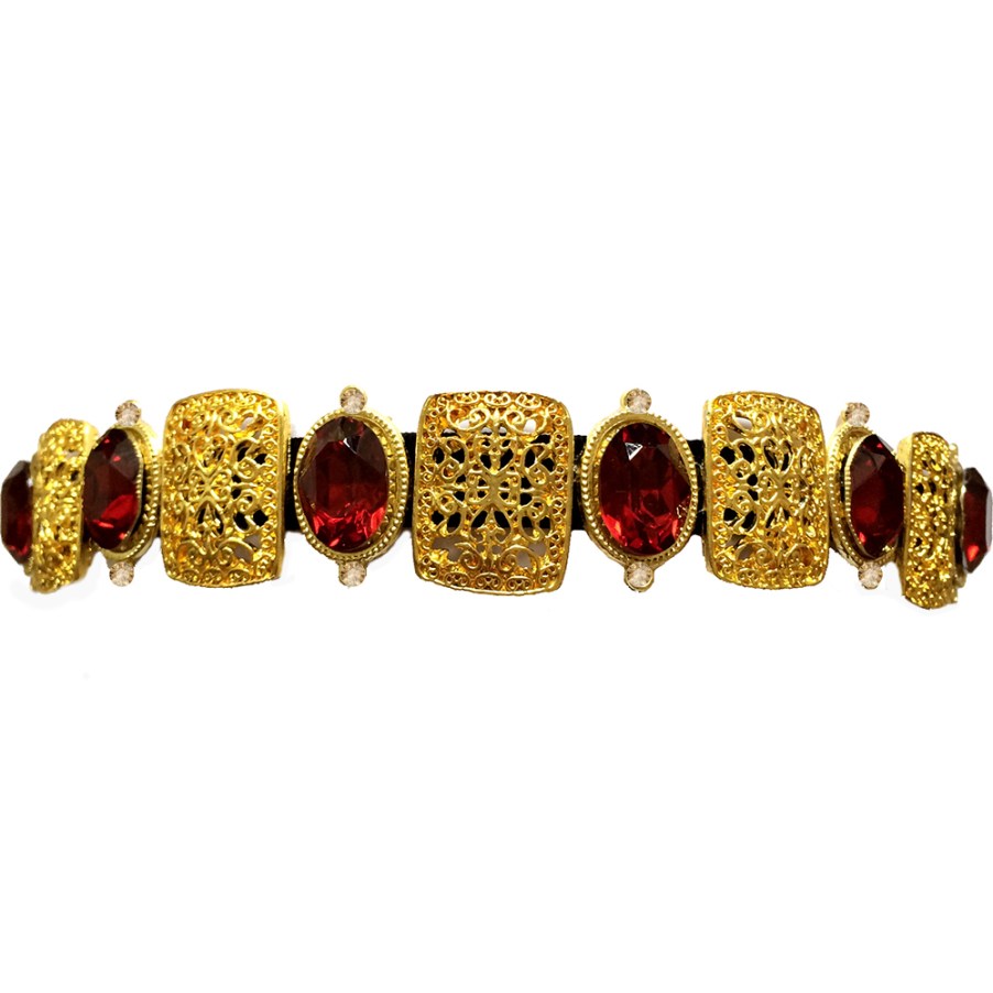 Bring on the festive spirit with this royal headgear made with Red stones and filigree blocks . Wear it with an Indian or Western outfit to complete your look.