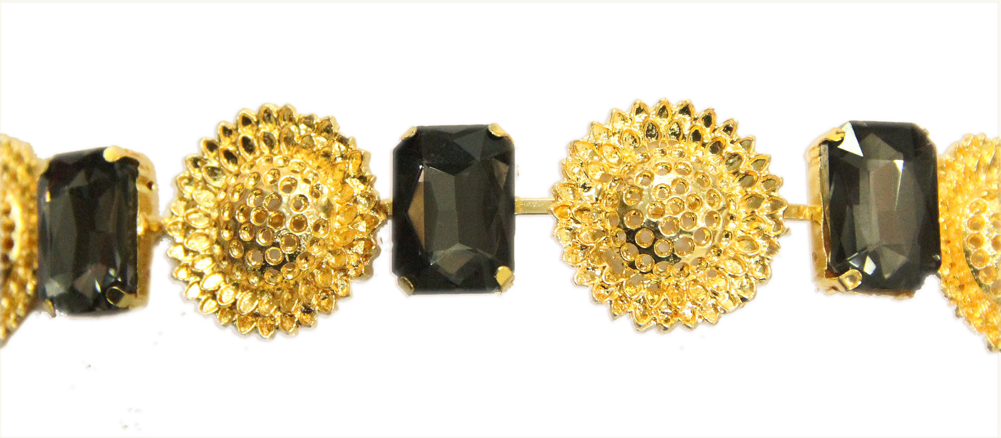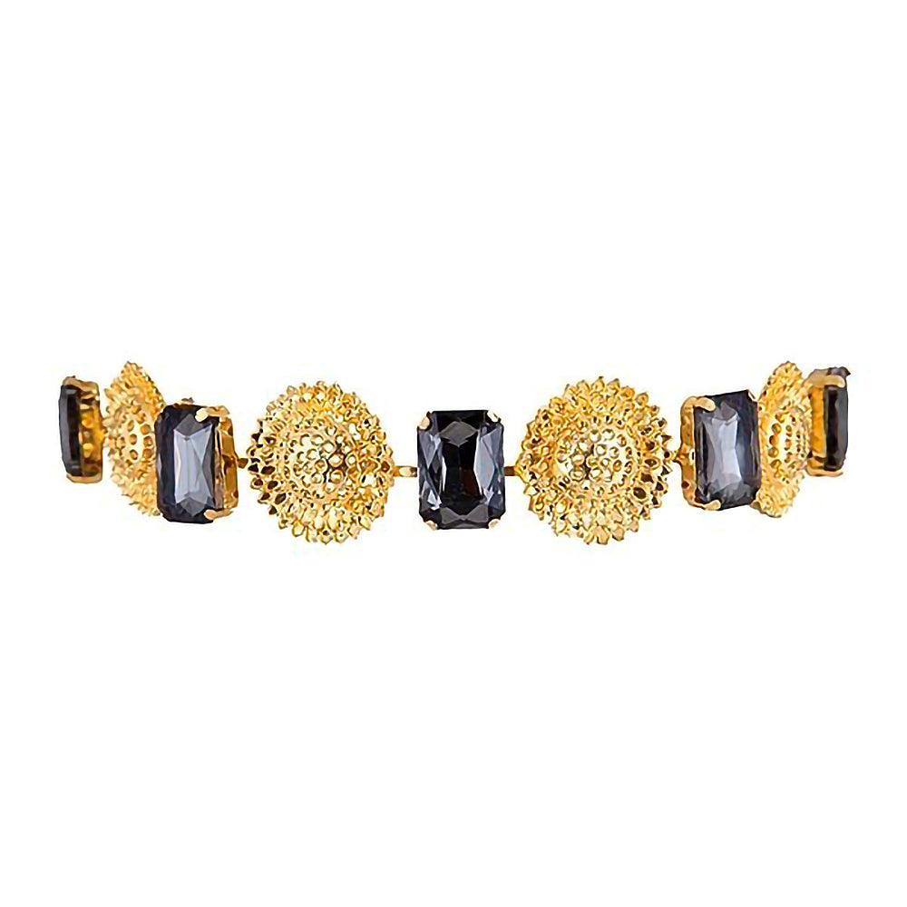Revamp class by adding luxury to your neck with our Sunflower Goddess choker. Gold plated with black stones this neckpiece will surely make a statement to your ownfit .