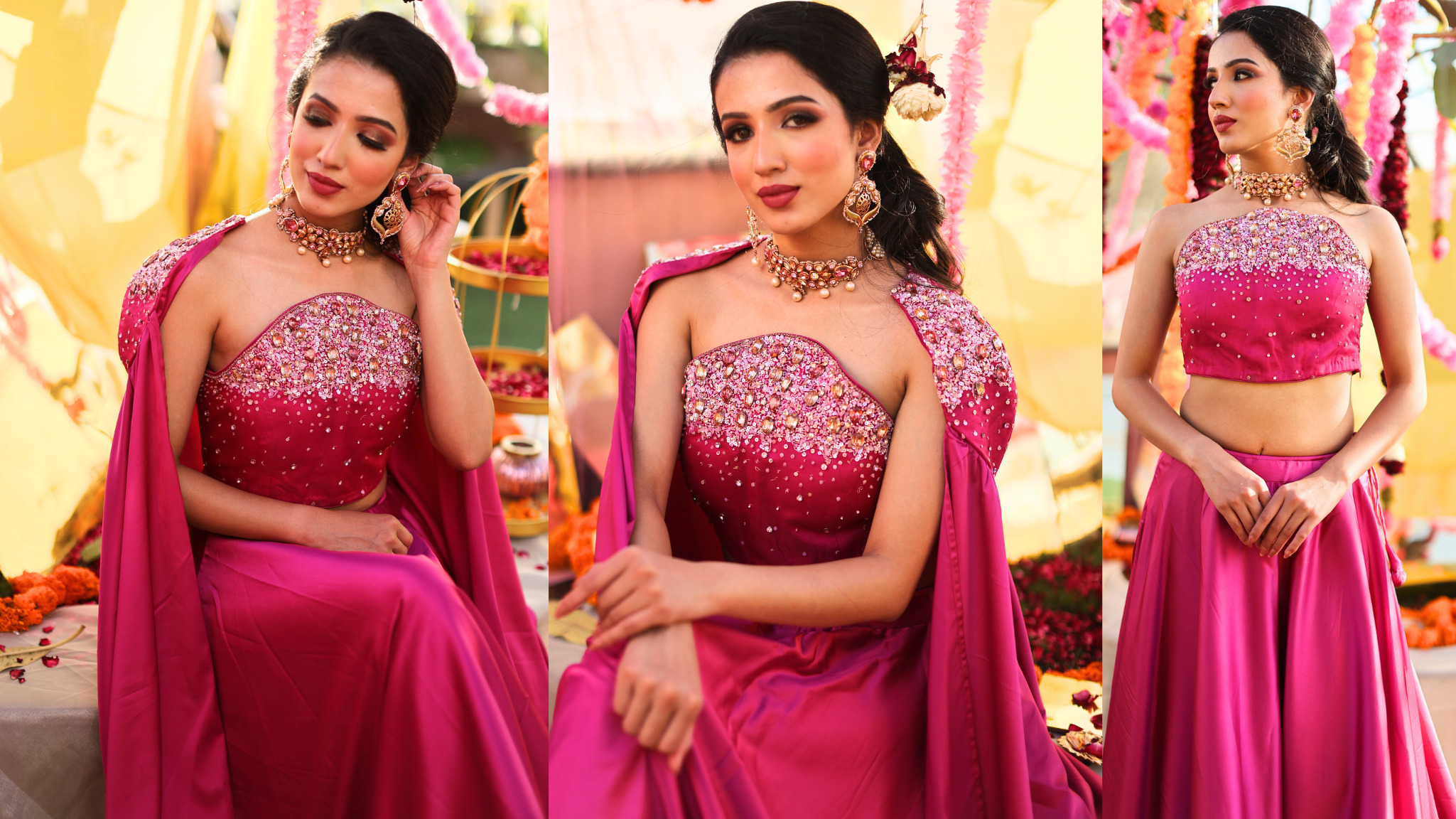 Can be worn with bridal wear , cocktail wear , evening wear , mehendi and sangeet occassions.