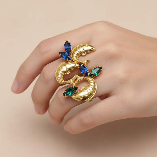 GOLD PLATED TOPAZ PHULKARIYAAN PEARL DROP RING