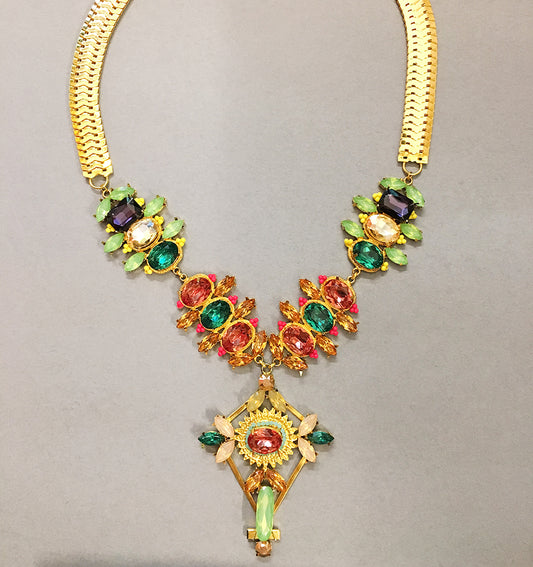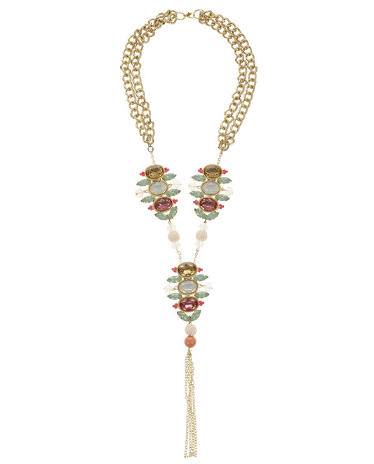 Gold-plated Multi-Coloured Stone Stack Tassel Neckpiece