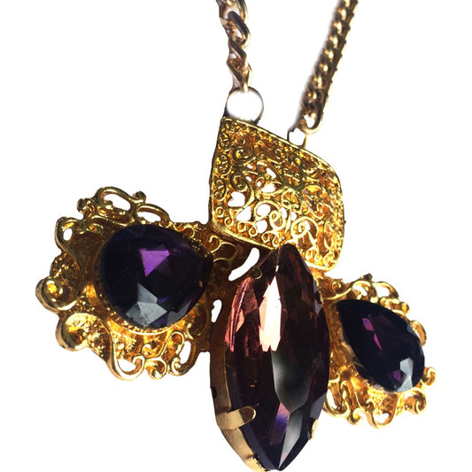 Goldplated Fuchsia Rivoli Long Neckpiece
