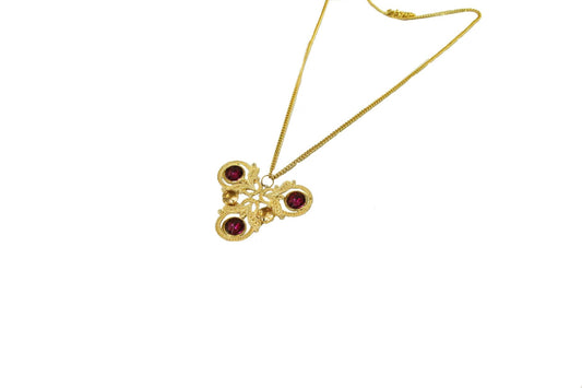 Gold-plated Blood Red Stoned Long Horse Shoe Neckpiece