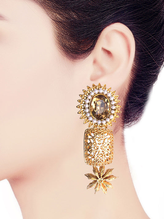 GOLD PLATED TOPAZ PHULKARIYAAN PEARL DROP RING