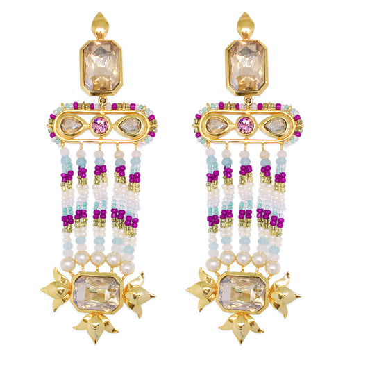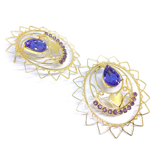 GOLDPLATED HEART RADIAL LAVENDER PHULKARIYAAN EARRINGS