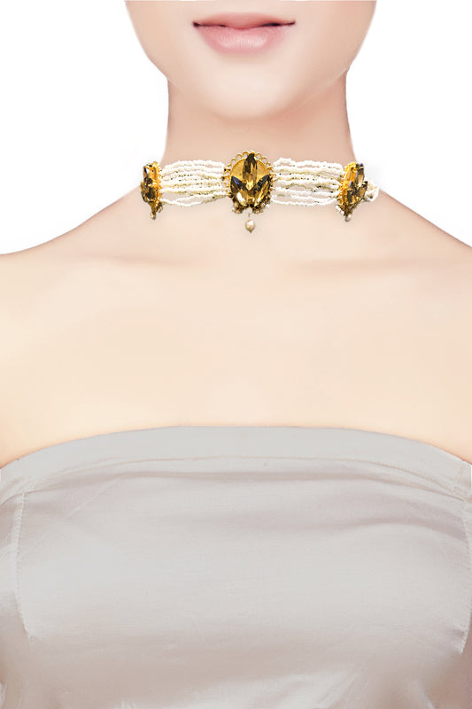 GOLD PLATED TOPAZ FLOWER PEARL PHULKARIYAAN STRING CHOKER