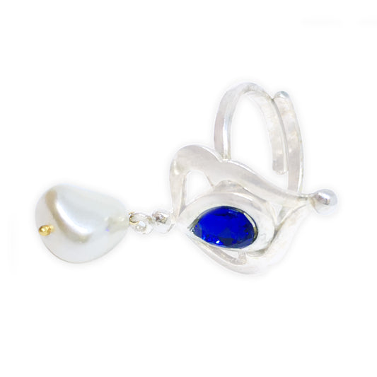 PERSIAN BLUE SILVER PLATED MUGHAL MUKKUT PHULKARIYAAN RING