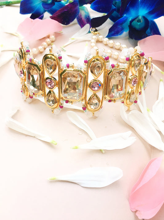 ROSE QUARTZ JADE PHULKARIYAAN CHOKER