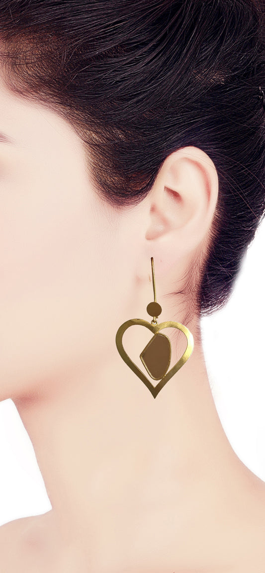 Gold-plated Piece of my Heart Galactic Cut Flat Stone Earring
