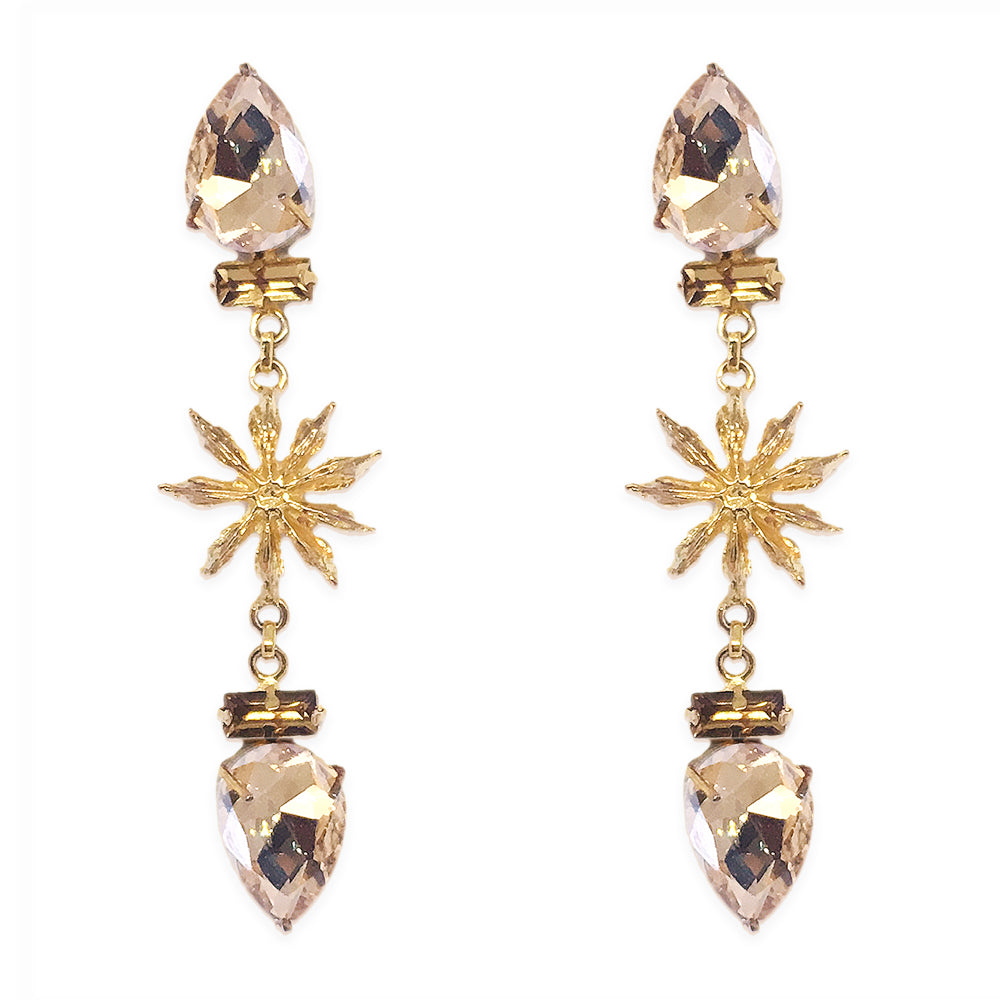 Inspired by Indian Spice named Star Anise, made with smoke black drop shape stones and plated with 24kt gold.