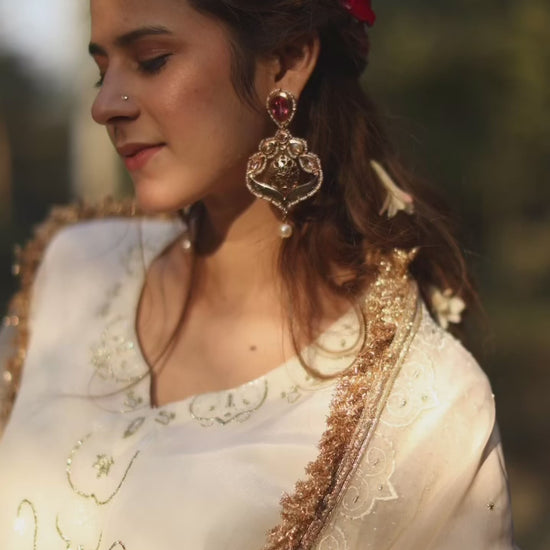 Bringing you motifs inspired from the interiors of the Peacock Throne at Diwan - E-Khas ( Red Fort ) with Cut Dana , Sequins , badla and pure resham ( Pure Silk ) Embroidery .